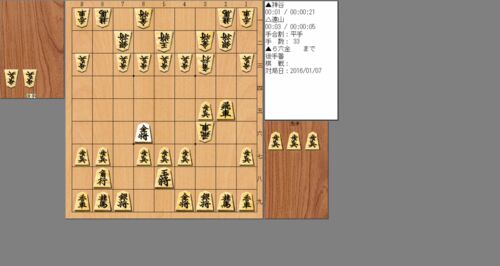 振り駒で後手になり、横歩取りへ。 前例の少ない展開から、力強い一着を指されたところ。 後手△が私です。 この▲6六金には驚きました。金の力で抑えこもうという狙いです。 実戦ではこの辺りで長考を繰り返すも、方針を間違えました。 感想戦、その後も棋士…